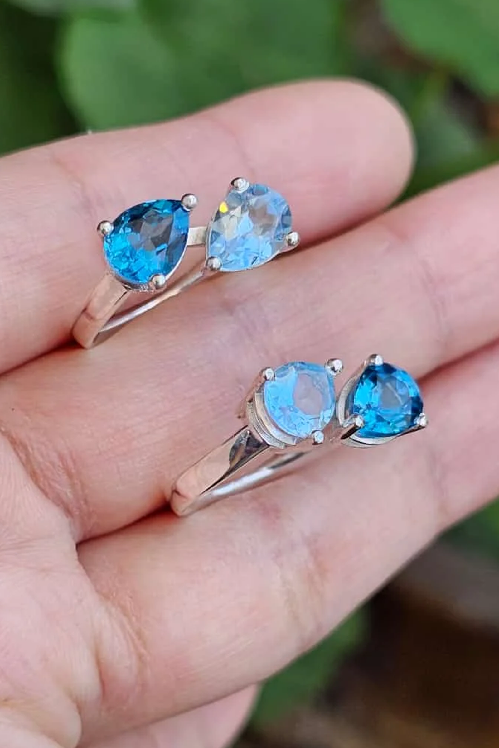Anillo de hoja en Topacio Imperial Azul y Topacio syc blue en plata 950.