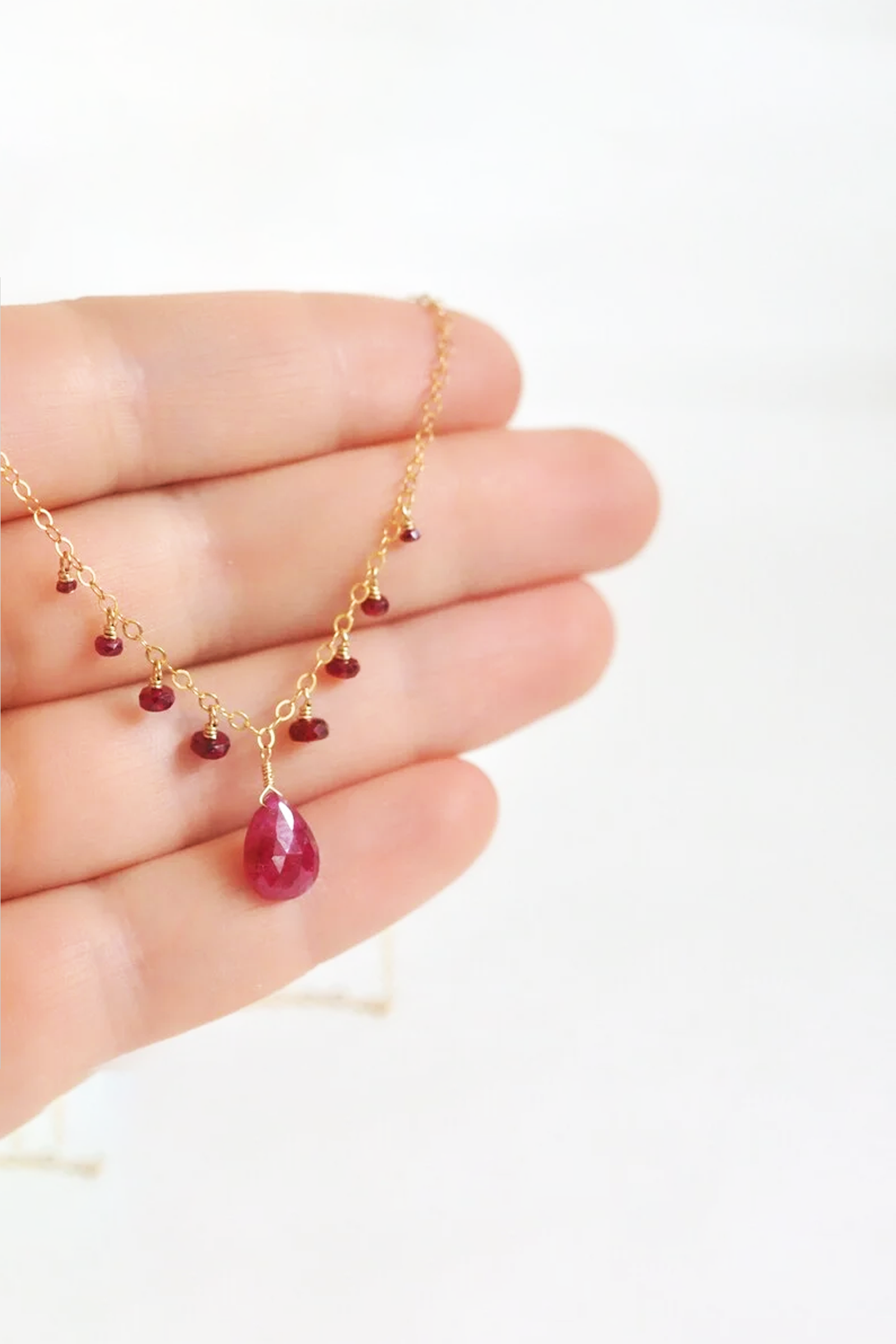 Este collar en oro de 18k resalta la intensidad del rubí natural, piedra vibrante que potencia la energía del corazón y fomenta la pasión y la motivación. Se dice que ayuda a limpiar energías negativas, a fortalecer la voluntad y a fomentar un sentido de abundancia y prosperidad. También se le atribuye la capacidad de estimular la creatividad y la valentía en los desafíos espirituales.